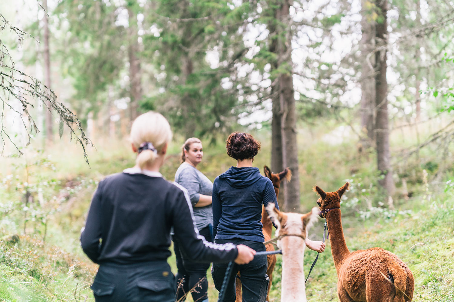 Alpakkakävelyllä ei tarvitse suorittaa eikä kilpailla, riittää kun pääset yhteyteen herkän eläimen kanssa ja huomaat samalla sen oman tilan tarpeen. Molemmin puolinen kunnioitus ja toisen olemuksen hyväksyminen palkitsee. Kävelyretkellä tai viimeistään kodalle istahtaessa havaitset kuinka oma olotilasi on keventynyt ja mieliala parantunut. Luonto ja eläimet tekevät hyvää.